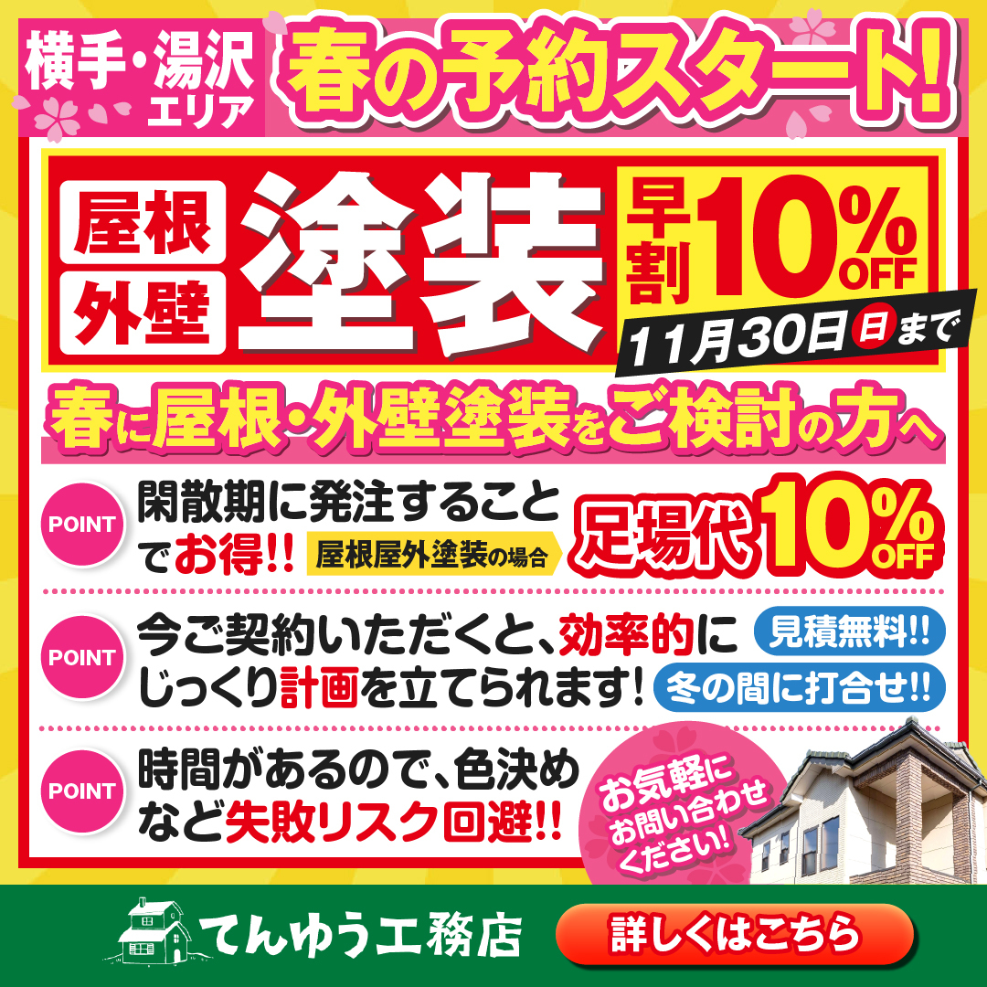【早割10%OFF】屋根・外壁塗装 春の予約スタート!